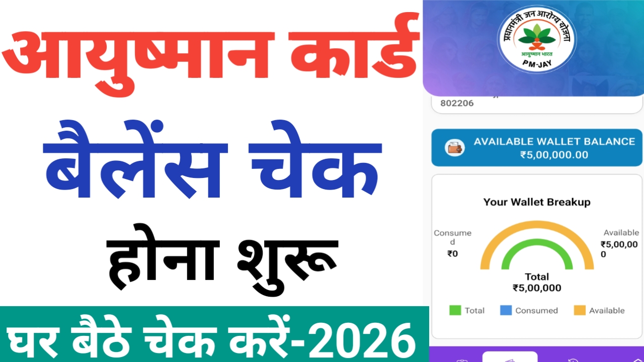 हमारे इस आर्टिकल के माध्यम से आप सभी कोप्रधानमंत्री जन आरोग्य योजनाके अंतर्गत Ayushman card Balance check 2026 ऑनलाइन करने के बारे में जानकारी प्रदान की ताकि आप भी अपना आसानी से आधार कार्ड का उपयोग करके आयुष्मान कार्ड का बैलेंस को चेक कर सकते हैं कि आपका आयुष्मान कार्ड में कितना पैसा बचा हुआ है अगर आपको हमारे इस आर्टिकल पोस्ट पसंद है तो आप अपने दोस्तों के पास कमेंट शेयर जरूर करें