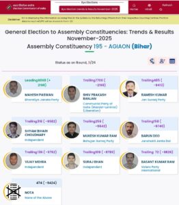 बिहार विधानसभा का लाइव काउंटिंग शुरू कर दी गई है तो आप देखना चाहते हैं कि कौन आगे चल रहा है की सीट पर कौन आगे चल रहा है इसके बारे में आप जानकारी करना चाहते हैं कि कितना वोट से आगे चल रहा है इसके लिए यहां आपको इस आर्टिकल पोस्ट जानकारी प्रदान की जा रहे हैं इसे लाइवचेक कर सकते हैंबिहार इलेक्शन कमीशन के तरफ से ऑफिशियल लिंक एक्टिव कर दिया गया वहां से आप देख सकते हैं कि आप कौन वोट कितना वोट से आगे चल रहा है इसके बारे में जानकारी प्राप्त कर सकते हैं|
