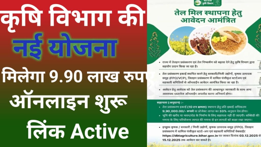 Bihar Krishi oil mil yojana 2025 | बिहार कृषि आयल मिल योजना 2025 मिलेगा 9.90 लाख रुपया