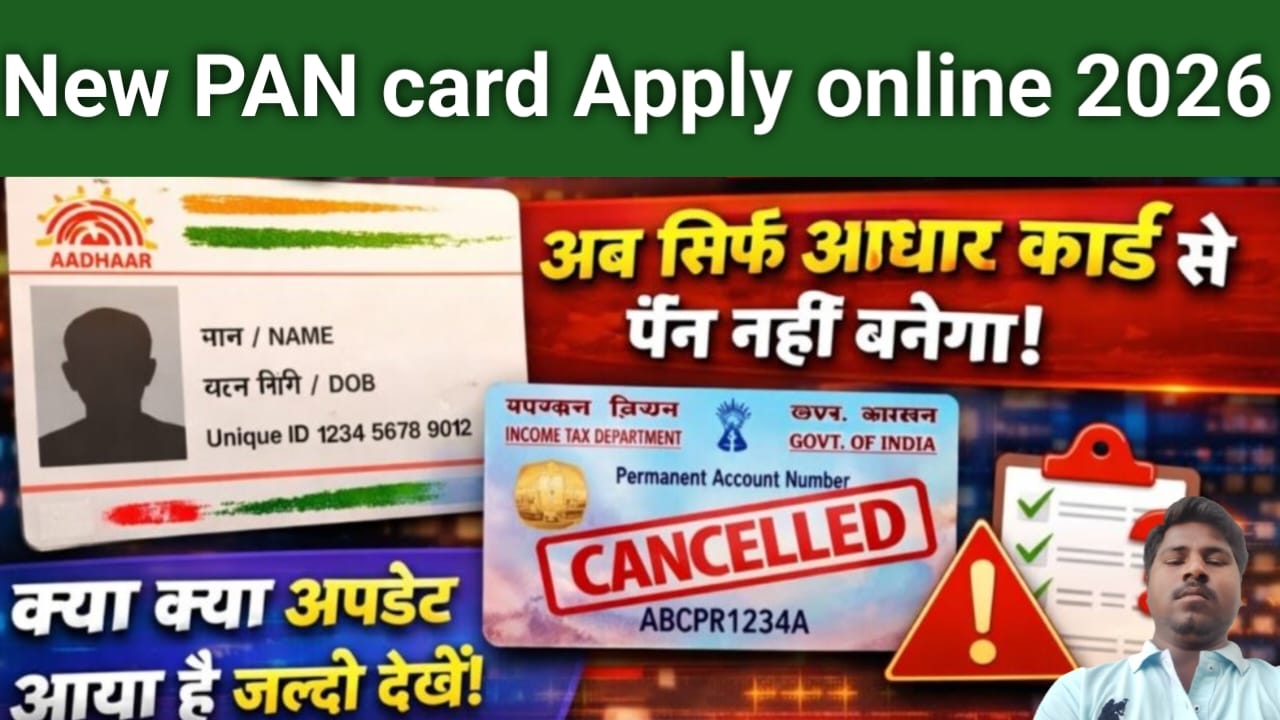 आज के इस आर्टिकल के माध्यम से हमआप सभी को new pan card Apply online 2026 इसके बारे में संपूर्ण जानकारी प्रदान की बल्कि अभी अपना आसानी से ऑनलाइन प्रक्रिया बनाकर खुद से अपना नया पैन कार्ड बनाने के लिए आवेदन फॉर्म भर सकते हैं अगर आपको हमारे इस आर्टिकल पोस्ट पसंद है तो आप अपने दोस्तों के पास कमेंट या शेयर जरूर करें